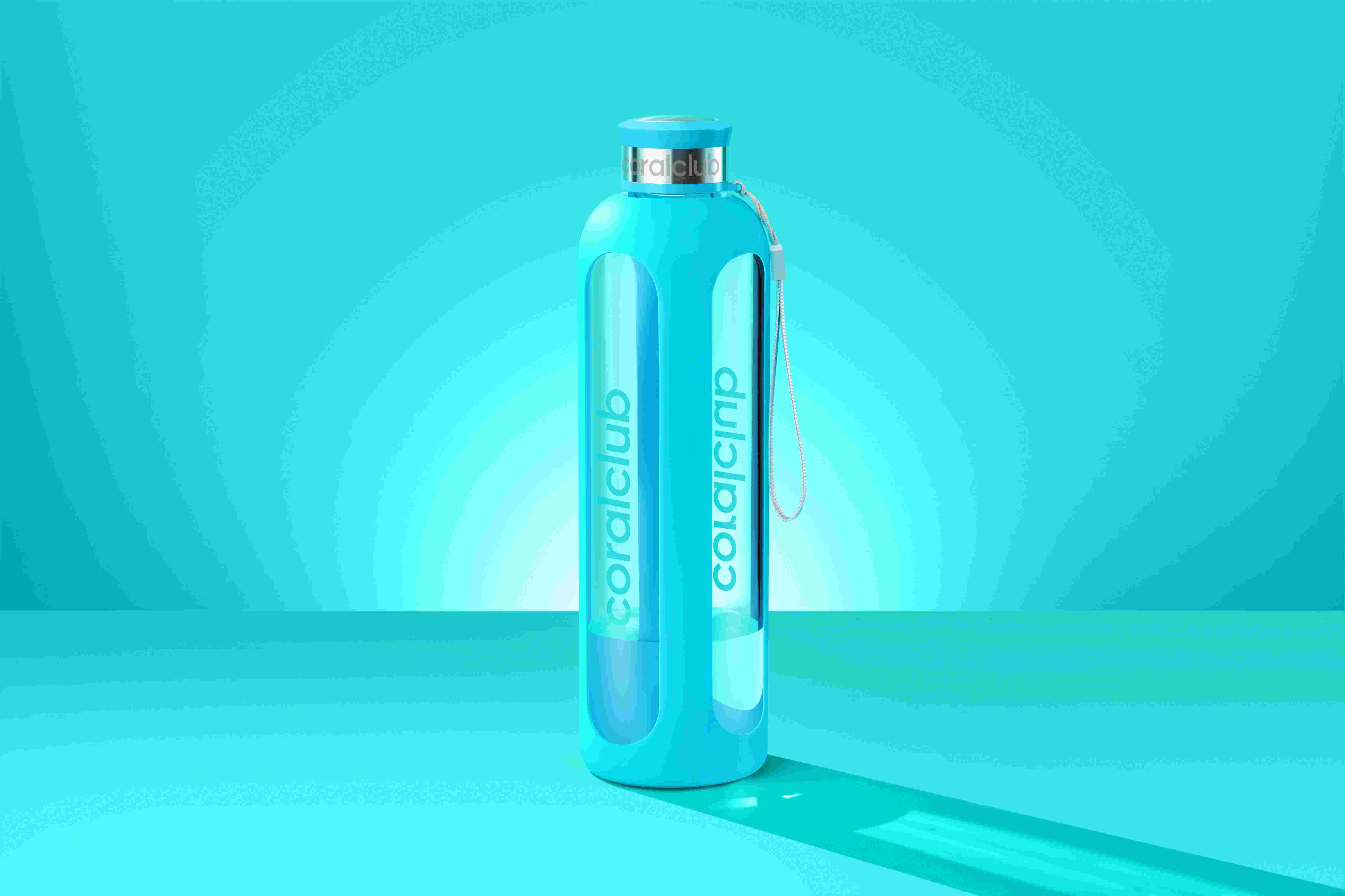 Szklana butelka ClearWater, turkusowa